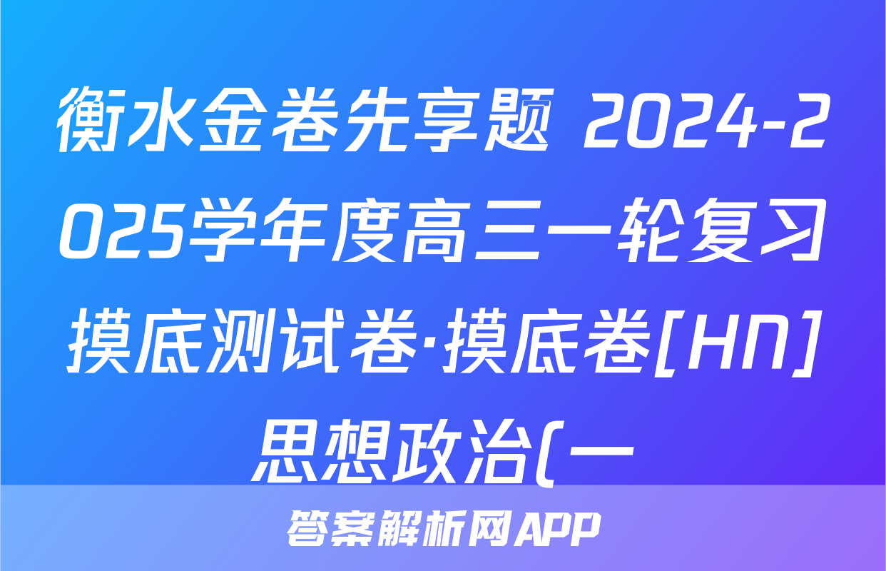 衡水金卷先享题 2024-2025学年度高三一轮复习摸底测试卷·摸底卷[HN]思想政治(一)1答案正在持续更新,目前2024-2025衡中同卷答案网为大家整理了相关试题及答案,供大家查缺补漏,高效提升成绩。