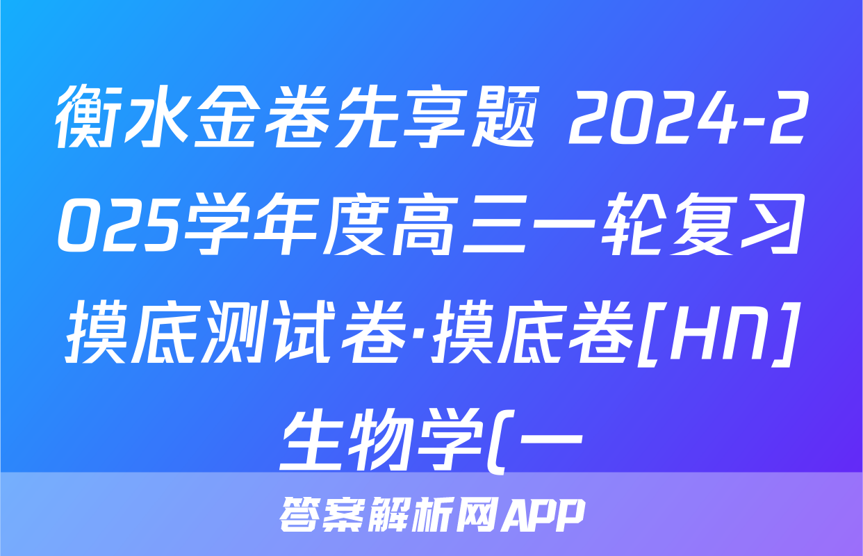 衡水金卷先享题 2024-2025学年度高三一轮复习摸底测试卷·摸底卷[HN]生物学(一)1答案正在持续更新,目前2024-2025衡中同卷答案网为大家整理了相关试题及答案,供大家查缺补漏,高效提升成绩。