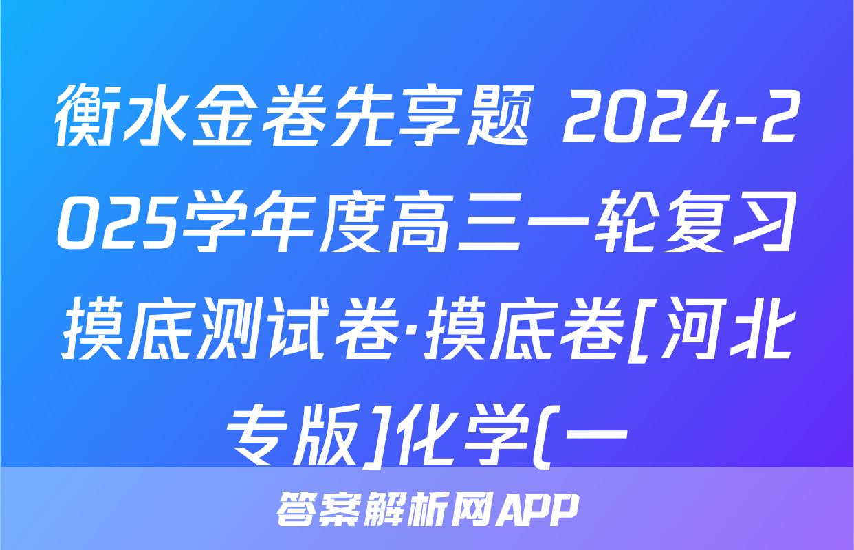 衡水金卷先享题 2024-2025学年度高三一轮复习摸底测试卷·摸底卷[河北专版]化学(一)1答案正在持续更新,目前2024-2025衡中同卷答案网为大家整理了相关试题及答案,供大家查缺补漏,高效提升成绩。