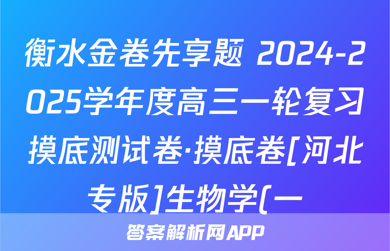 衡水金卷先享题 2024-2025学年度高三一轮复习摸底测试卷·摸底卷[河北专版]生物学(一)1答案正在持续更新,目前2024-2025衡中同卷答案网为大家整理了相关试题及答案,供大家查缺补漏,高效提升成绩。