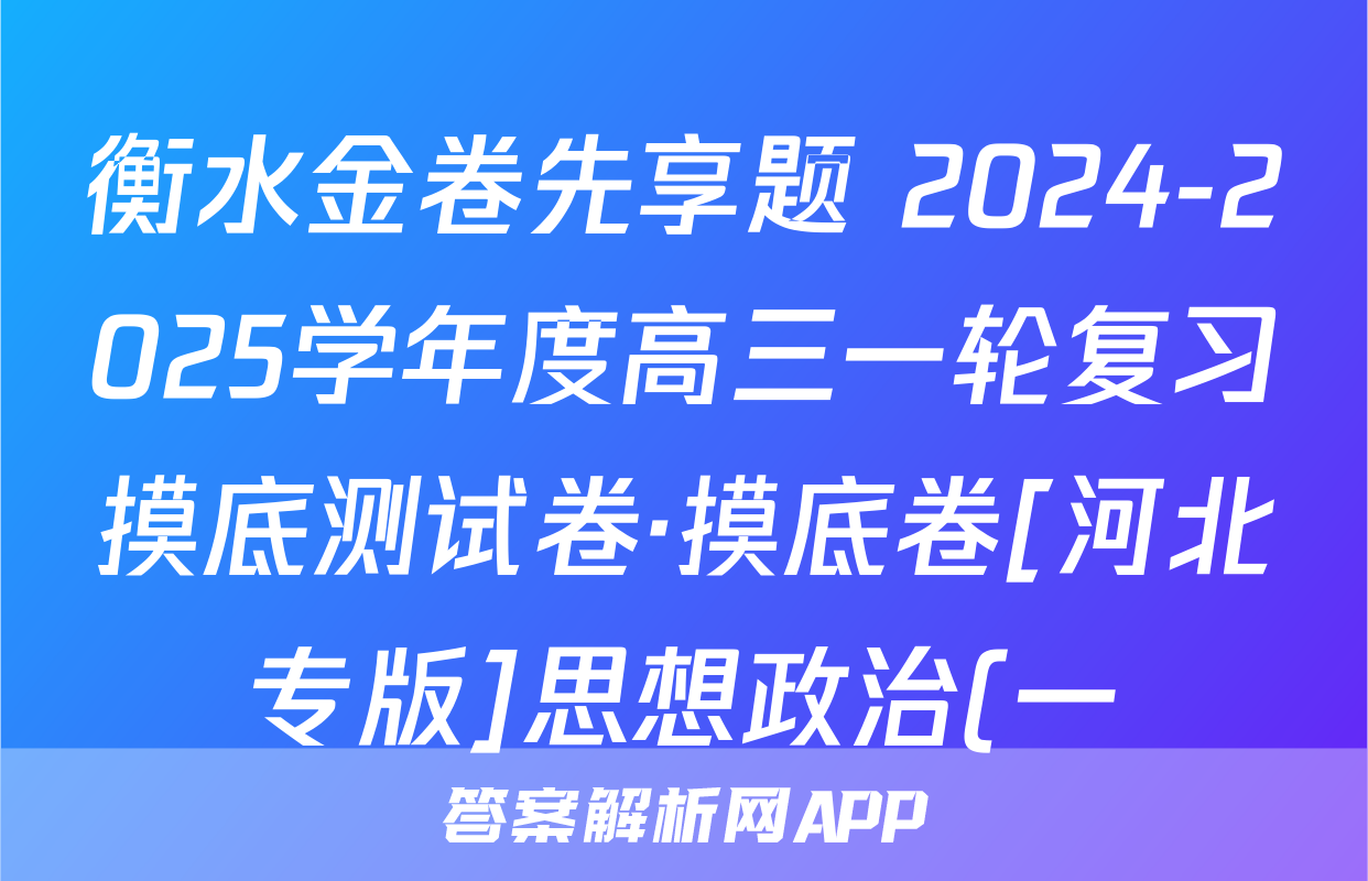 衡水金卷先享题 2024-2025学年度高三一轮复习摸底测试卷·摸底卷[河北专版]思想政治(一)1试题正在持续更新,目前2024-2025衡中同卷答案网为大家整理了相关试题及答案,供大家查缺补漏,高效提升成绩。