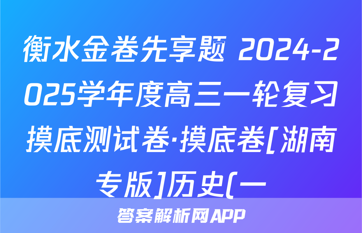 衡水金卷先享题 2024-2025学年度高三一轮复习摸底测试卷·摸底卷[湖南专版]历史(一)1试题正在持续更新,目前2024-2025衡中同卷答案网为大家整理了相关试题及答案,供大家查缺补漏,高效提升成绩。