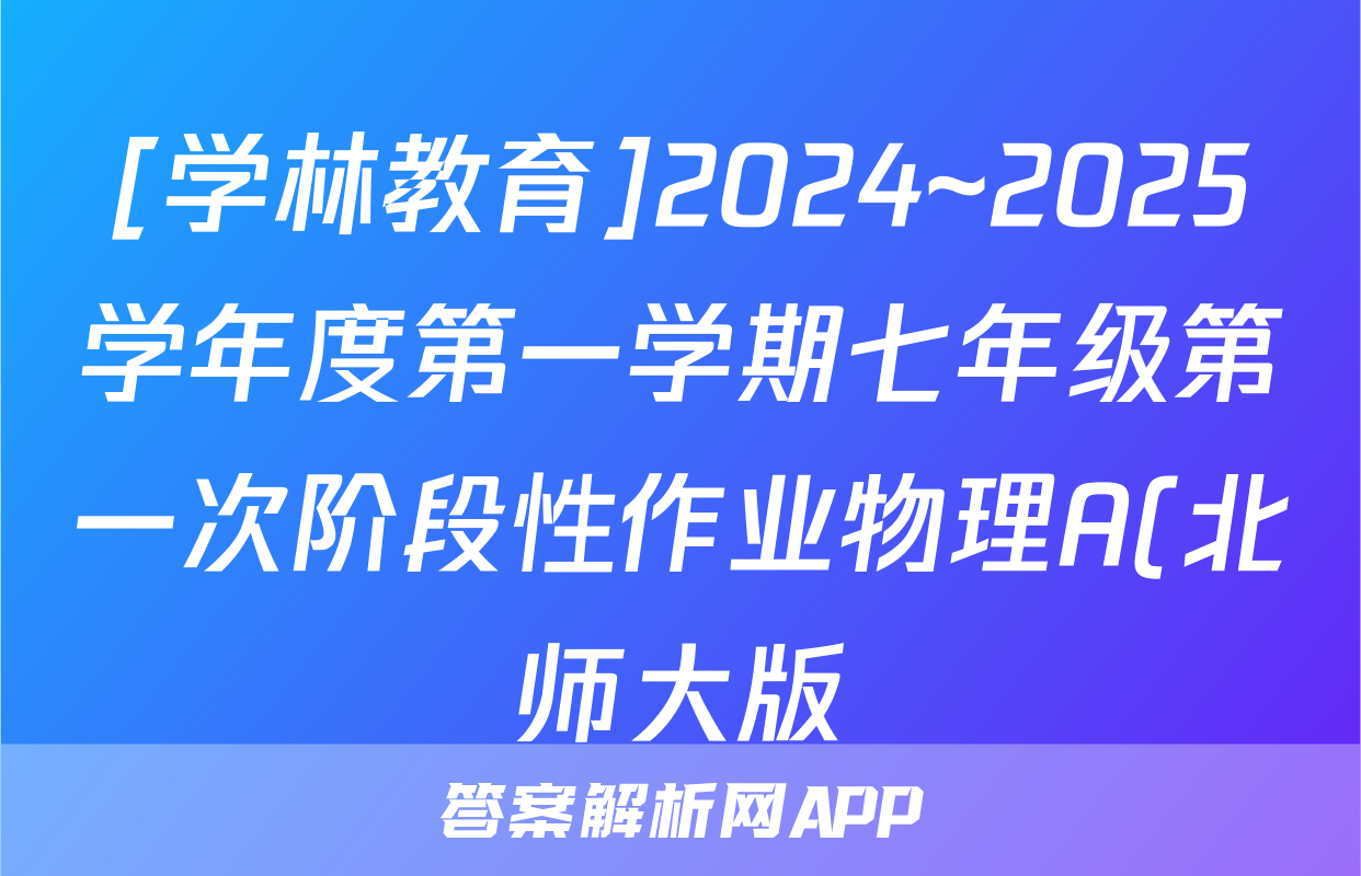 [学林教育]2024~2025学年度第一学期七年级第一次阶段性作业物理A(北师大版)试题正在持续更新,目前2024-2025衡中同卷答案网为大家整理了相关试题及答案,供大家查缺补漏,高效提升成绩。