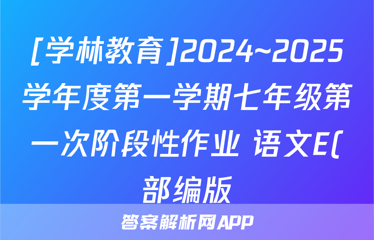 [学林教育]2024~2025学年度第一学期七年级第一次阶段性作业 语文E(部编版)答案正在持续更新,目前2024-2025衡中同卷答案网为大家整理了相关试题及答案,供大家查缺补漏,高效提升成绩。