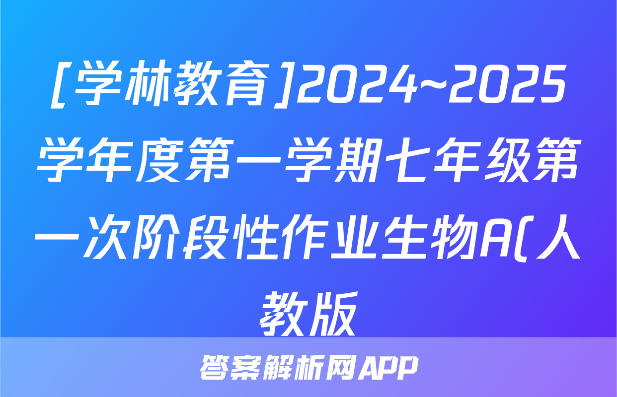 [学林教育]2024~2025学年度第一学期七年级第一次阶段性作业生物A(人教版)答案正在持续更新,目前2024-2025衡中同卷答案网为大家整理了相关试题及答案,供大家查缺补漏,高效提升成绩。