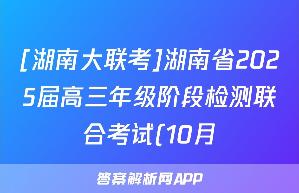 [湖南大联考]湖南省2025届高三年级阶段检测联合考试(10月)生物试题正在持续更新,目前2024-2025衡中同卷答案网为大家整理了相关试题及答案,供大家查缺补漏,高效提升成绩。