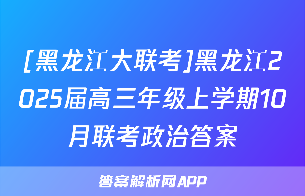 [黑龙江大联考]黑龙江2025届高三年级上学期10月联考政治答案正在持续更新,目前2024-2025衡中同卷答案网为大家整理了相关试题及答案,供大家查缺补漏,高效提升成绩。