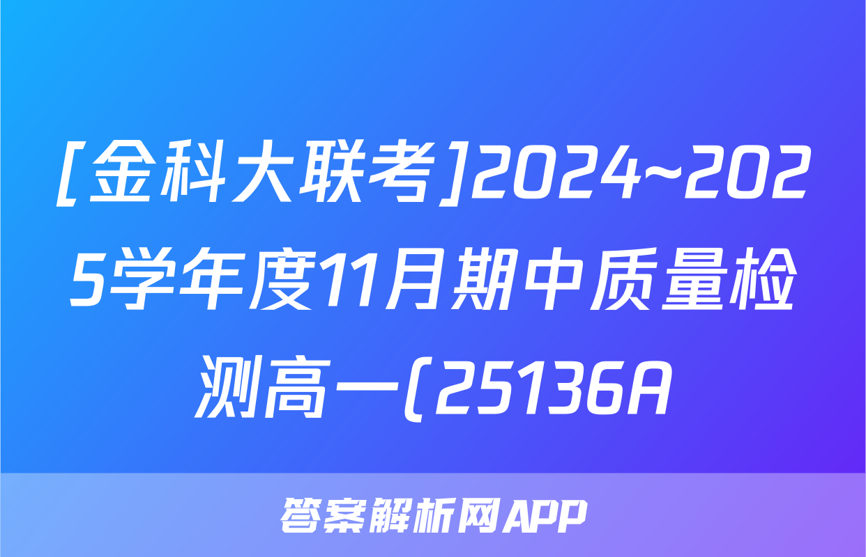 [金科大联考]2024~2025学年度11月期中质量检测高一(25136A)语文-B答案正在持续更新,目前2024-2025衡中同卷答案网为大家整理了相关试题及答案,供大家查缺补漏,高效提升成绩。
