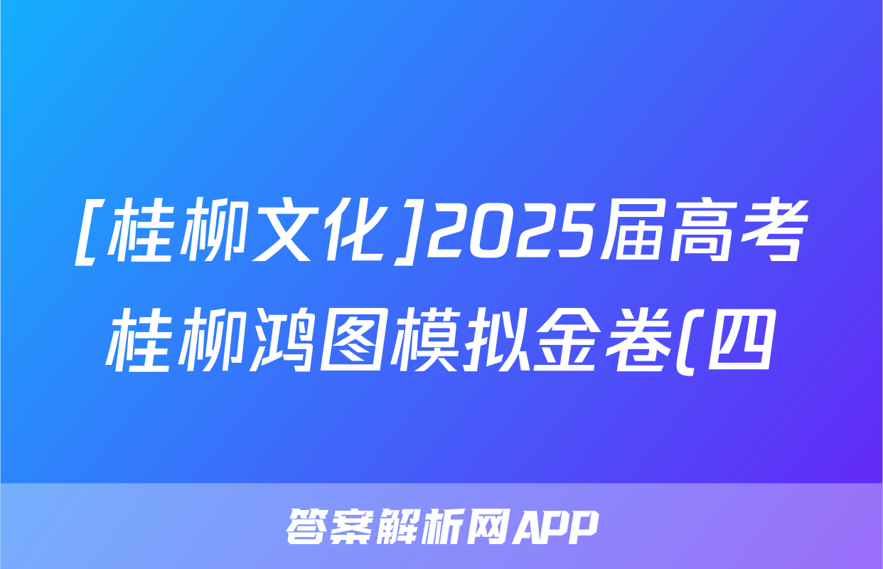 [桂柳文化]2025届高考桂柳鸿图模拟金卷(四)4地理试题正在持续更新,目前2024-2025衡中同卷答案网为大家整理了相关试题及答案,供大家查缺补漏,高效提升成绩。