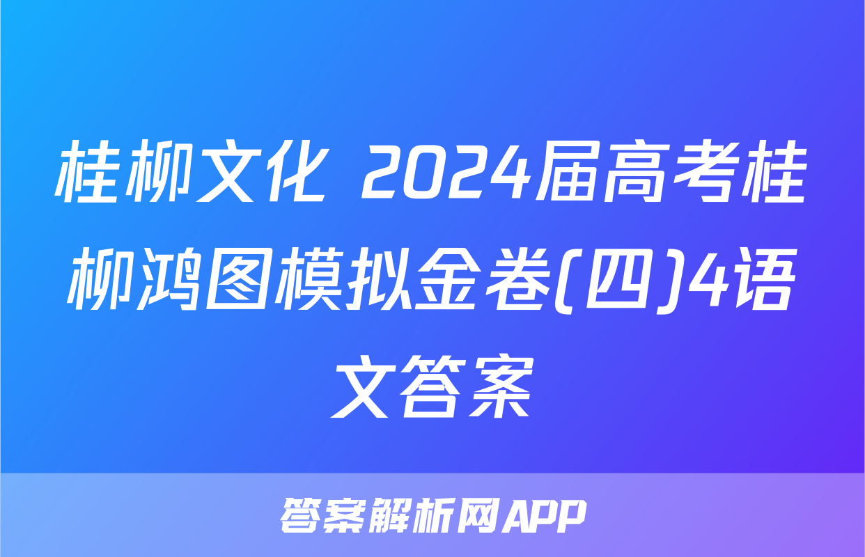 4、桂柳文化 2024届高考桂柳鸿图模拟金卷(四)4英语答案